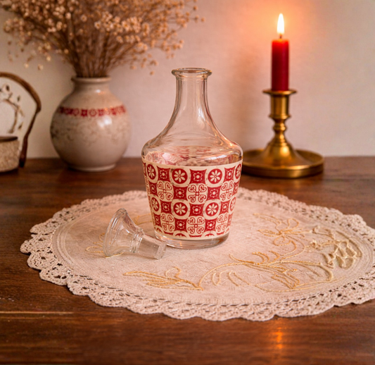 Carafe vintage années 70 – Motif rouge | Verrerie rétro