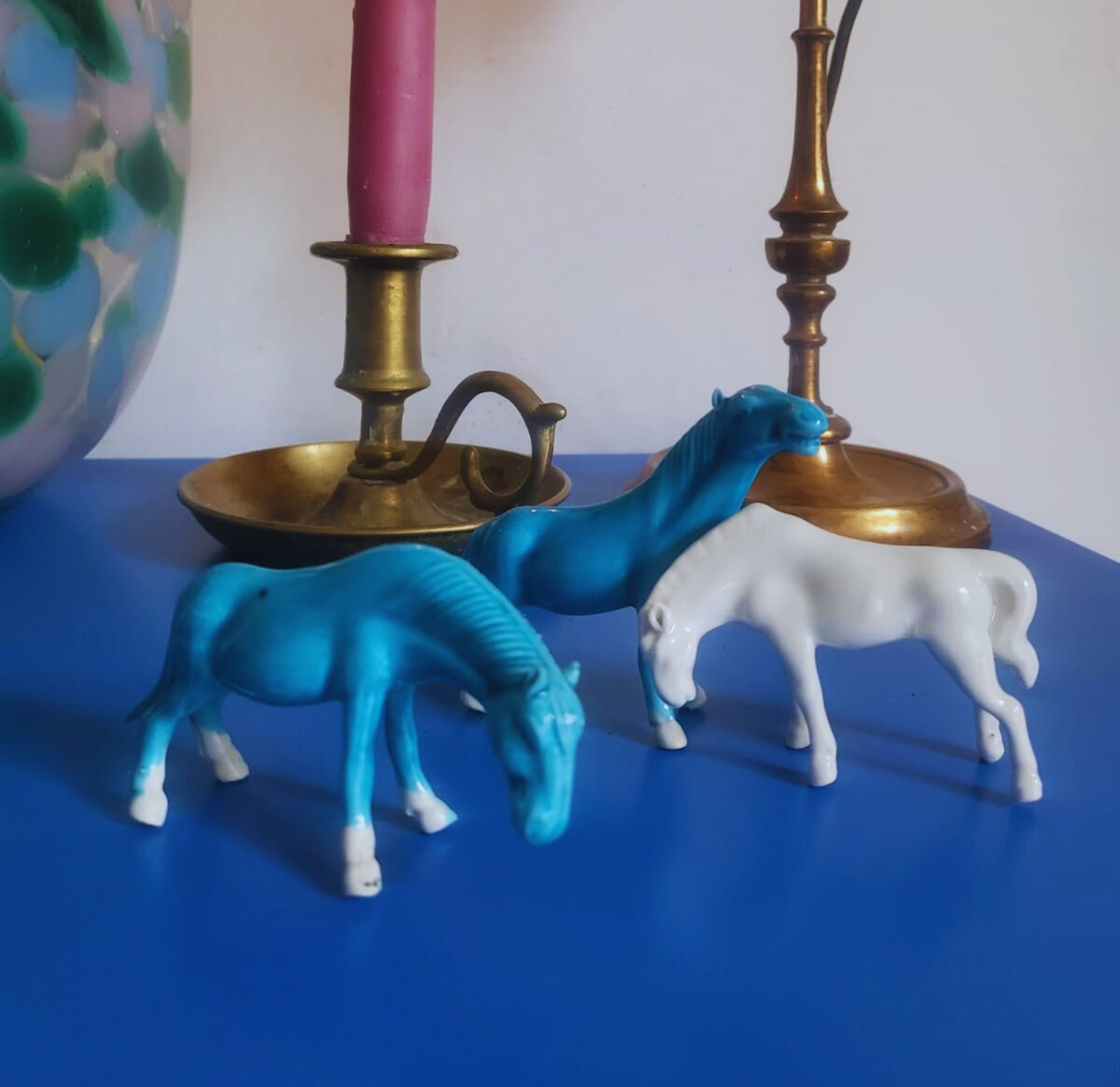 Ensemble de 3 chevaux turquoise & blanc – Porcelaine
