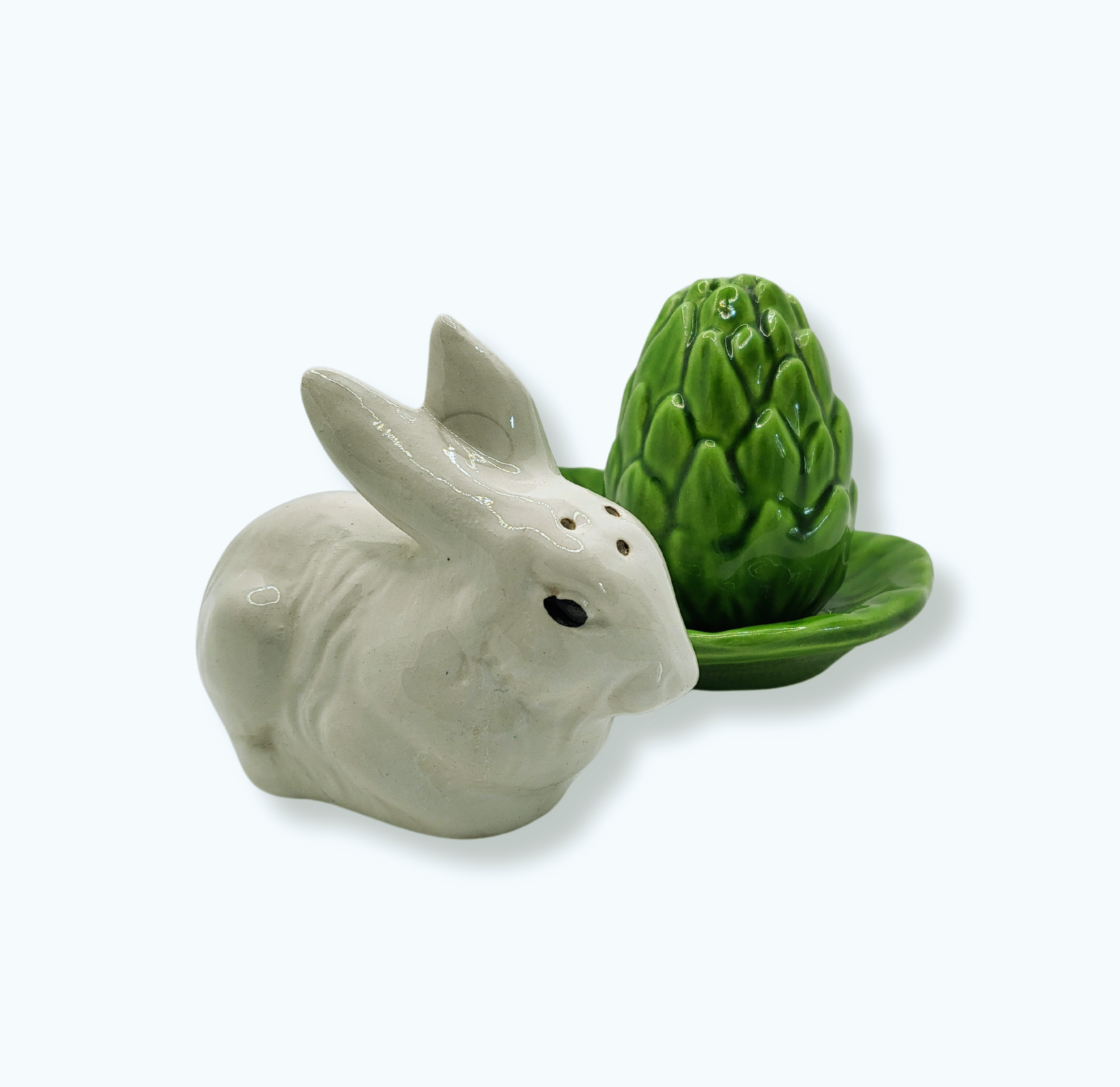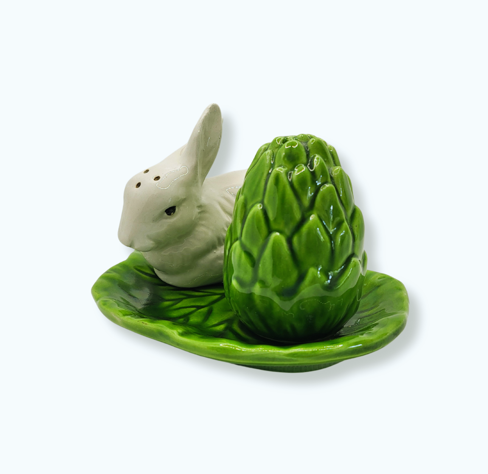 Salière & poivrière barbotine – Lapin et feuille de chou