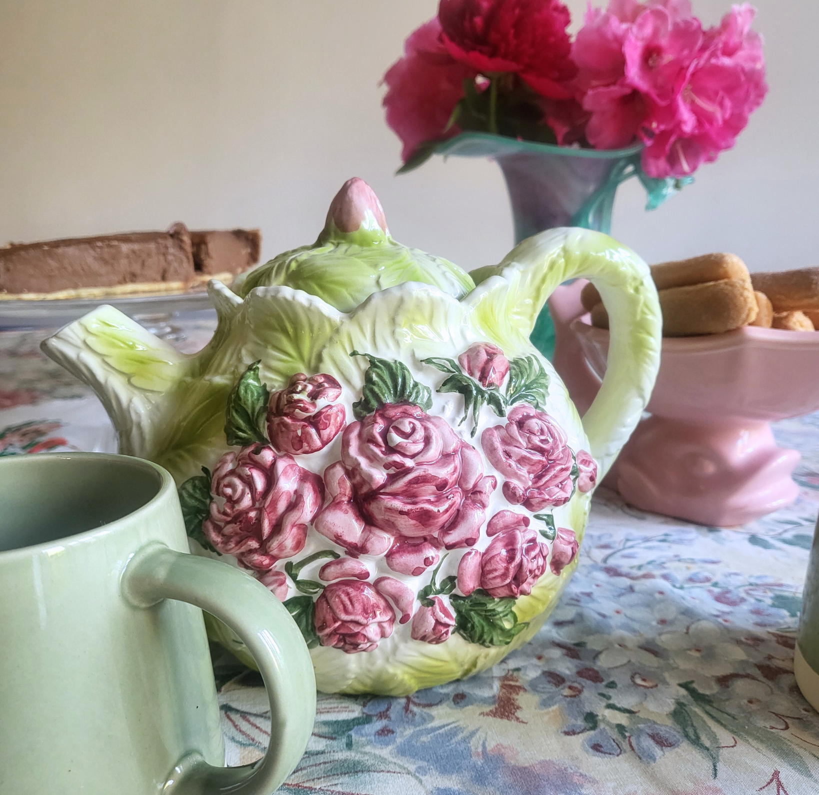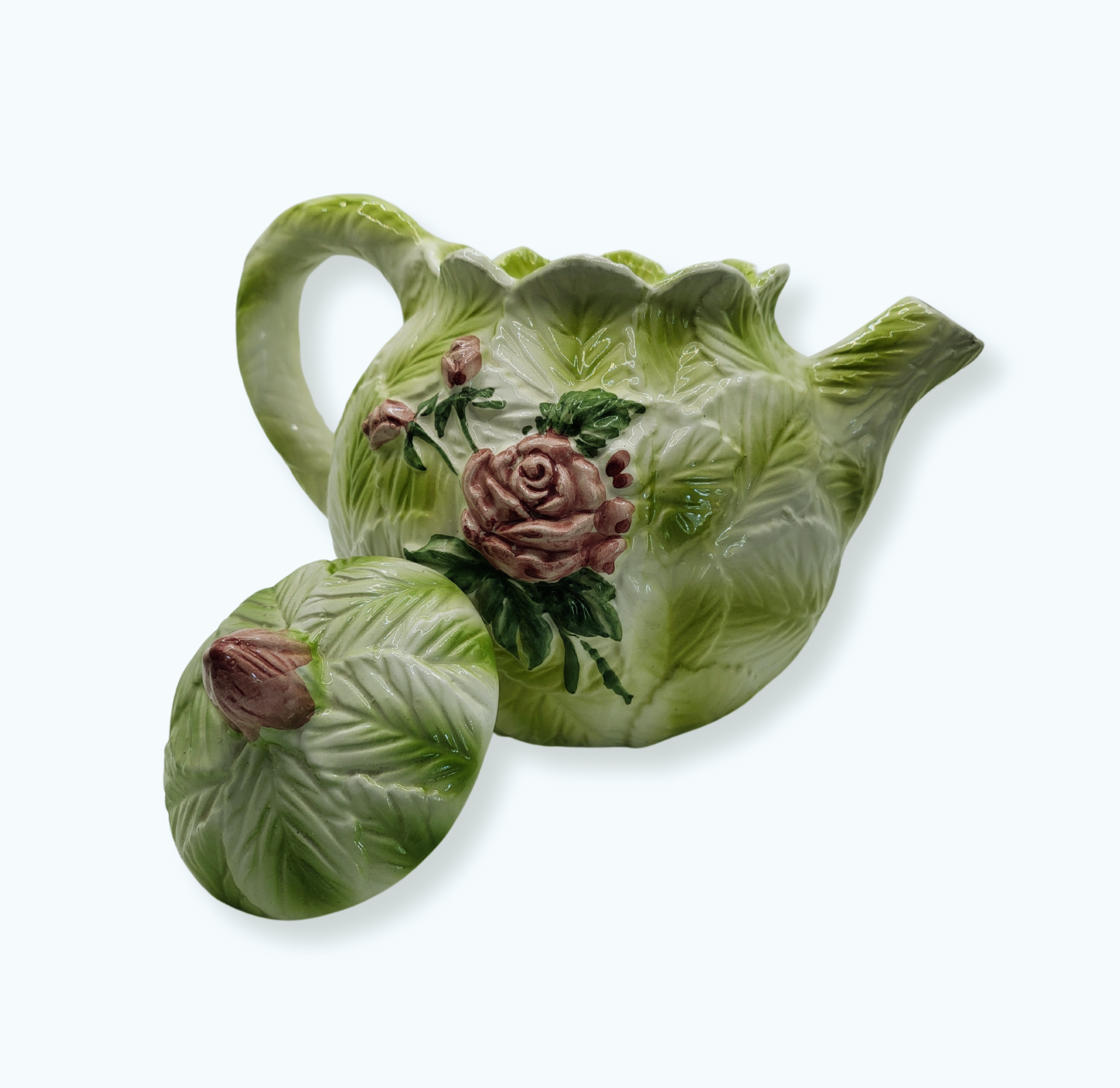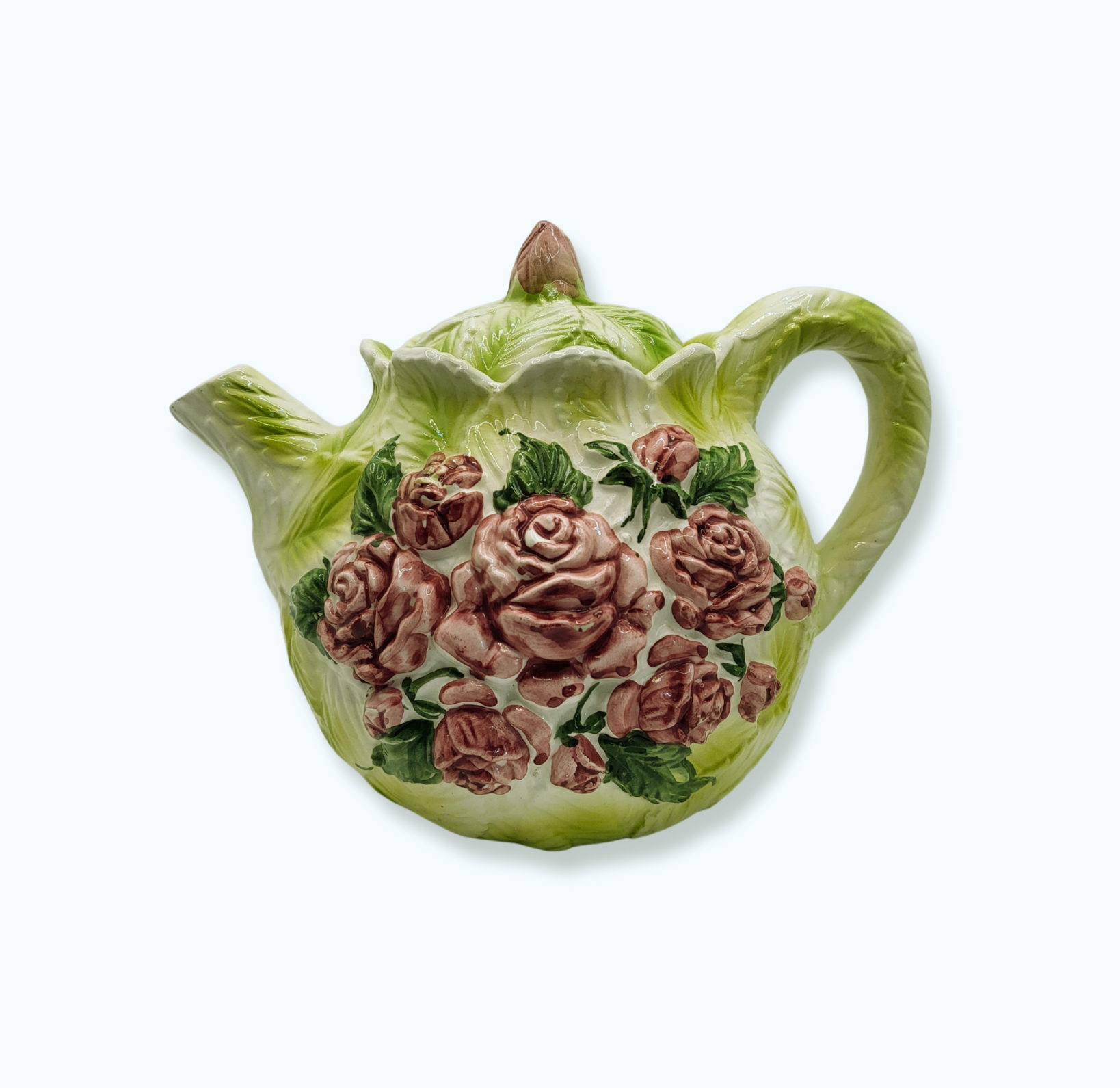 Apportez une touche florale et bucolique à votre table avec cette magnifique théière en barbotine au décor feuille de roses. Ce modèle , typique des faïences françaises du XIXe et XXe siècle, séduit par son relief généreux, ses couleurs vibrantes et son charme d’antan.